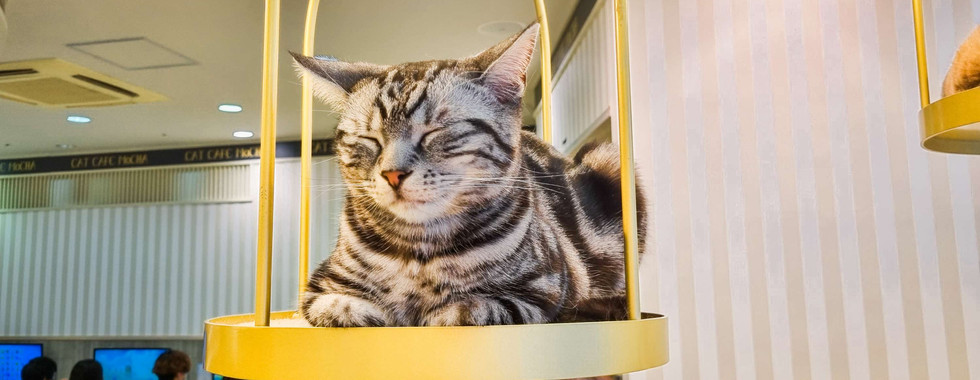 De katten zijn erg vriendelijk, helaas niet echt schoot katten. Ze liggen rustig in hun hang mandjes of in de grote boom in het midden van het cafe. Soms komen ze even langs om te kijken wat je aan het doen bent en gaan vervolgens weer hun eigen ding doen. Ook is er een hoek met allemaal manga als je zin hebt om te lezen, moet je wel Japans kunnen lezen.