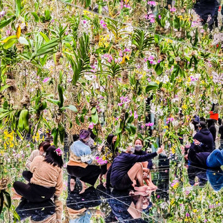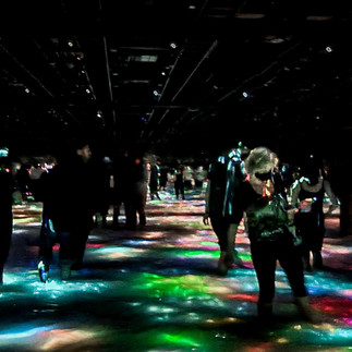 Er is een kamer met gigantische lichtgevende ballen, zilveren alien eieren, vol met hangende bloemen, lichtshows op het plafond waardoor het lijkt alsof je bent gekrompen tot het formaat van een insect en een kamer vol met water waar je tot je knieƫn in staat terwijl er een projectie koi karpers rond je voeten laat zwemmen. Super indrukwekkend.